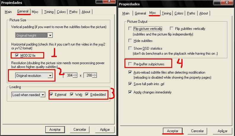 4- Esta opción debe estár sin marcar para que los karaokes que vengan en los subs tengan efectos y no se queden pegados.