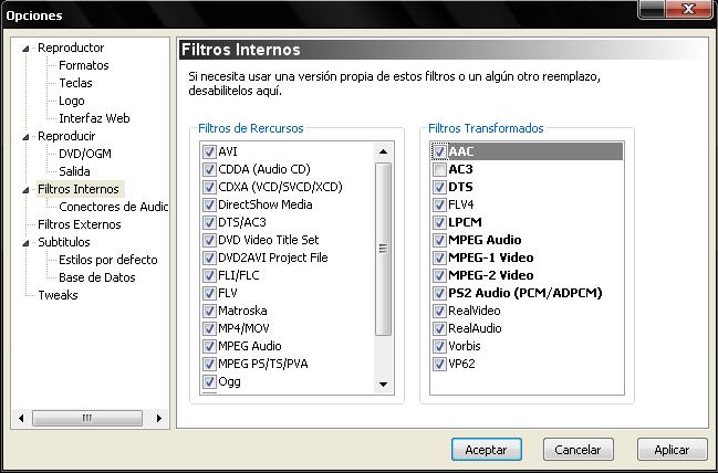 Usa los codecs externos que vienen con el K-Lite así como también unos cuantos internos