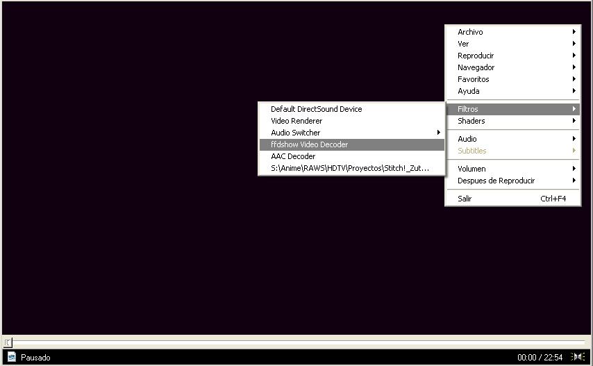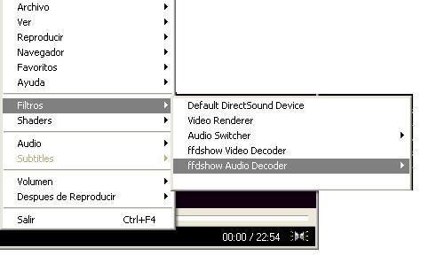 Y luego comprobamos nuevamente que esté actuando el filtro de ffdshow audio decoder.