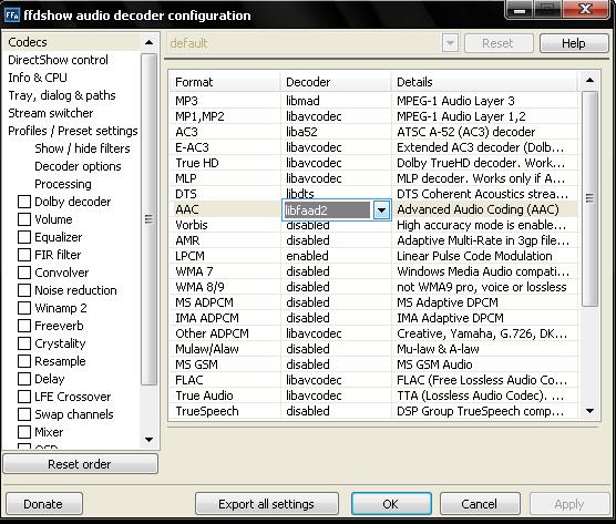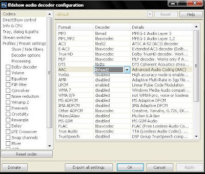 y buscan la entrada al Decoder de ffdshow audio y video como se muestra en la imagen.